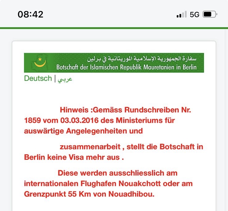Ich war sehr gut vorbereitet. Als ich einchecken wollte, dürfte ich nicht. Ich habe kein Visum für Mauretanien. Ich gab an, dass ich ein Visum bei der Ankunft bekommen würde. So stand es auf der Webseite der Botschaft. Das stand auch in vielen Reiseberichte.