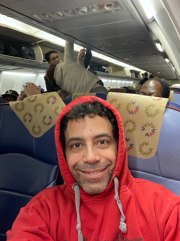 Im Flughafen hat alles reibungslos und super bequem funktioniert. Nun sitze ich am Gate und es sind nicht viele Leute, die mitfliegen. Nun fängt die Reise einen Tag später an.