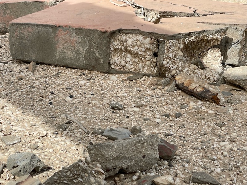 An einer riesengroßen Ruine, einer Hotelanlage, die nicht zu Ende gebaut wurde, kehrte in die Stadt rein. Bei der Ruine bemerkte ich, dass sie hier offenbar kein Kies benutzen, sondern Muscheln. Auch die Straßen waren häufig mit Muscheln befestigt und nicht mit Kies.