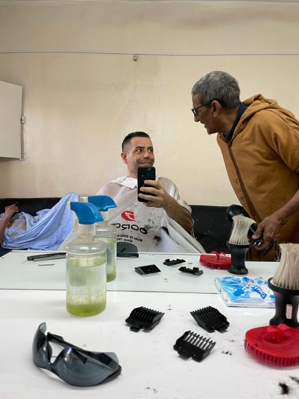 Irgendwann wurde ich müde. Die ganze Zeit habe ich nach einem Laden gesucht, um eine Simkarte für das Telefon und somit für das Internet zu kaufen. Unmöglich zu finden. Viele Telefonläden, die aber alle gebrauchte Telefone verkaufen oder Reparaturen anbieten. Eine Simkarte war nicht zu finden. Als ich sehr müde wurde, und hier in Nouakchott ist es nicht so einfach, am Straßenrand einen leeren und sauberen Stein zu finden, entscheide ich mich für einen Haarschnitt. Das macht die Haarpflege ohnehin einfacher.