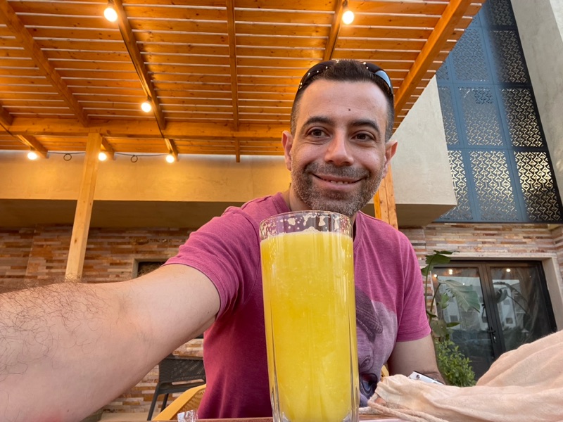 Jetzt wieder im Café. Ich habe Mangosaft bestellt und bin gespannt, wie dieser aussehen würde.