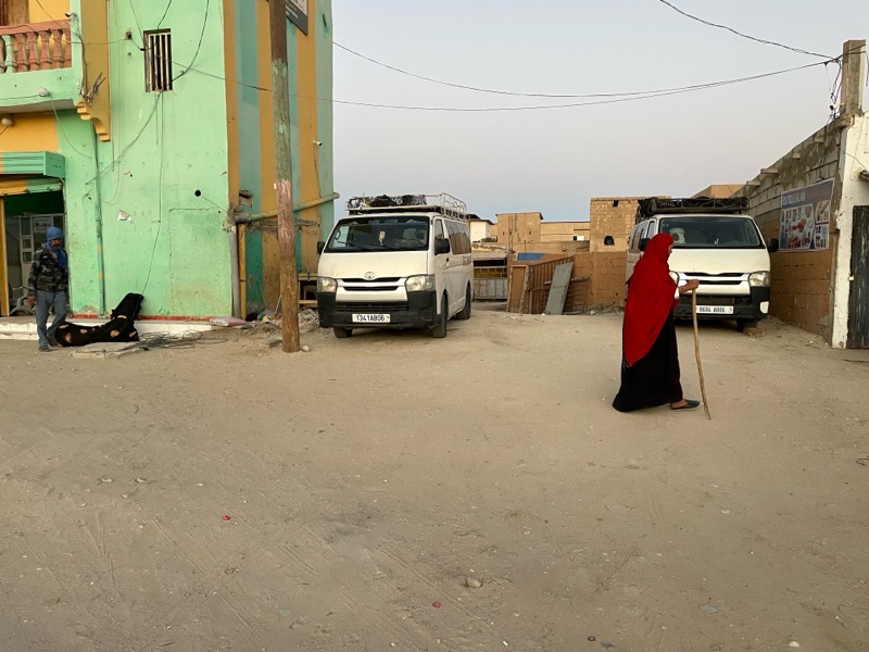 Die Fahrt war völlig in Ordnung. Auf dem Weg merkte ich, wie es südlich von Nouakchott grüner geworden ist. Also nicht richtig grün, nur ein bisschen grüner. Es gab immer wieder Bäume. 30 oder 40 km südlich gab es ständig und flächendeckend Bäume. Diese waren karg, dunkelgrün, und stachelig. Aber sie waren da und die Hügel waren nicht mehr kahl. Allerdings wachsen die Bäume dennoch aus dem Sand raus.
