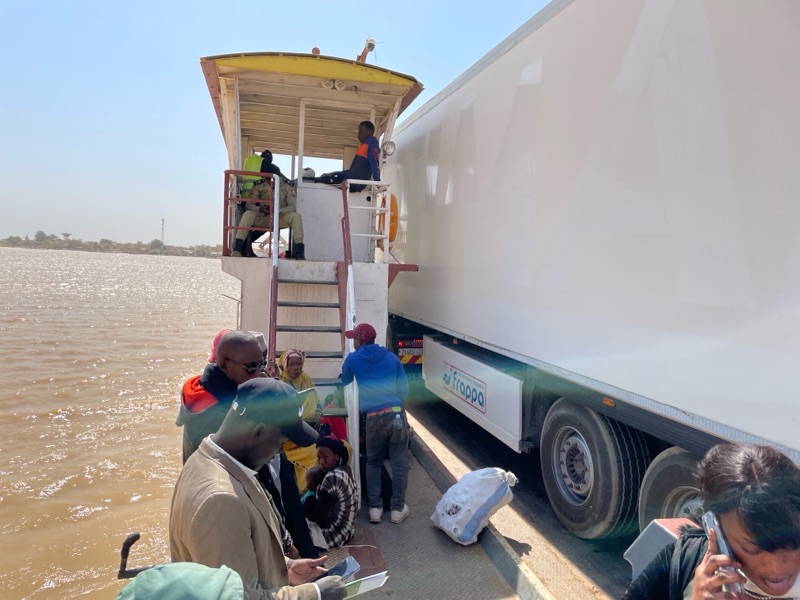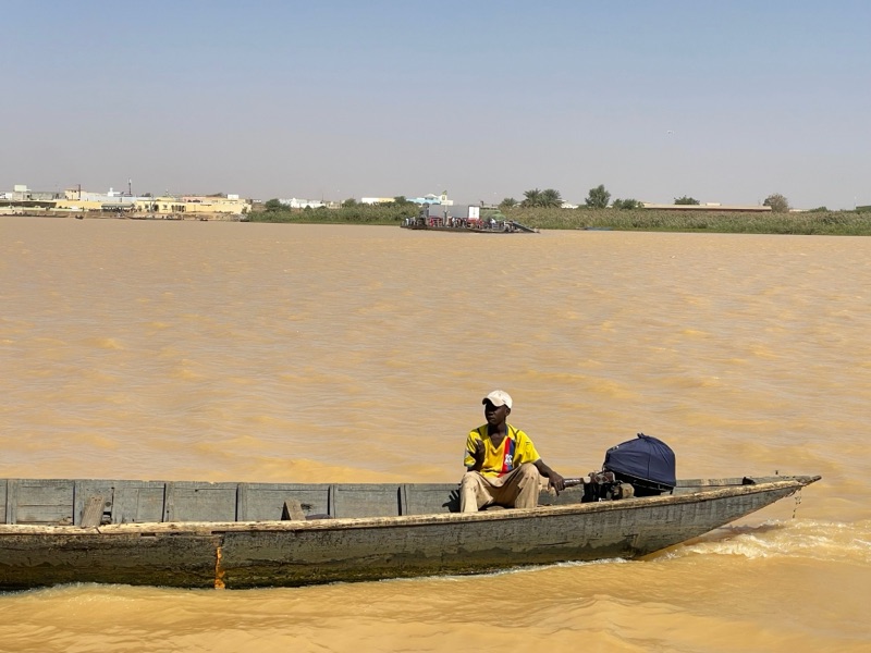 in Rosso angekommen, bestand ich darauf, zum Grenzübergang zu Fuß zu gehen, und lehnte die Angebote, mit der Pferdekutsche hingefahren zu werden. Ich glaube, das war eine gute Entscheidung. Der Grenzübergang Rosso hat mir die ganze Zeit Angst gemacht. Alles, was ich bisher las, ist grauenvoll. Doch als ich dort ohne Begleitung ankam, habe ich auf dem Weg meine letzten Ugiyas gegen CFA getauscht und hab dann einen Schalter gesehen, über den es stand, dass es eigentlich für Autos ist. Ich fragte dennoch nach. Vollständig unproblematisch, bei Vorlage meines ausgedruckten Visums (danke Hani), bekam ich den Ausreisestempel innerhalb von 5 Minuten. Ich ging wie selbstverständlich zur Fähre und stieg drauf. Das kostete sogar gar nichts. Und 20 Minuten später bin ich in Senegal angekommen. Die Überfahrt war echt schön. Hier ein paar Fotos.