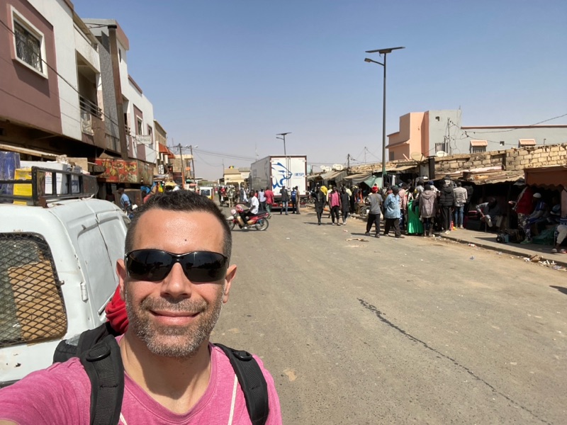 In Senegal angekommen, hat ein Polizist mir den Pass weggenommen. Während ich nachher in der Schlange stand, um die Einreise zu regeln (Reisepass sollte unabhängig von mir dorthin gebracht werden), kaufte ich eine Simkarte für Senegal. Schon bin ich online, bevor ich die Einreise erteilt bekam. Auch die Einreise hier war vollständig unproblematisch und ich bekam meinen Stempel sehr schnell. Der Mann, der mir die Simkarte verkaufte, hat dann ewig die Informationen aus meinem Passport aufgenommen. Es ist bürokratisch, aber weniger als in Deutschland. Dann bin ich ebenso zu Fuß zum Busbahnhof gegangen und schlug viele Angebote ab. Das war wohl auch richtig. Es waren diesmal schon fast 2 km und die Zuvilisation-Landschaft war vergleichbar mit Mauretanien. Nur nun gibt es kaum arabische Schrift, und alle Menschen sind schwarze Afrikaner.