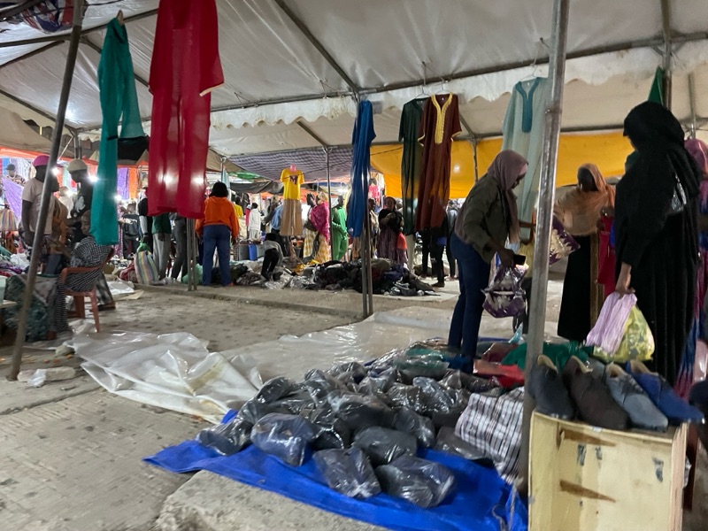 Das Baguette war lecker, etwas scharf. Aber für mich erträglich und ich habe es genossen. Ich setzte mich auf eine Bank hinter der Frau und habe sie und die ganzen Menschen beim Wuseln beobachtet. Übrigens, direkt links von der Frau, gibt es einen Mann, der gehackte Zwiebel verkauft. Du kannst ihm deine Zwiebeln geben und er hackt sie für dich, oder du kaufst eine Tüte bereits gehackte Zwiebeln. Sie essen viel Zwiebel hier. Der Sack neben ihm kommt übrigens aus der Niederlande. Und direkt daneben, in der Blechhütte, ist ein Fleischer. Bei ihm würde ich niemals Fleisch kaufen, denn das sah eklig aus. Jedoch wahrscheinlich esse ich gerade sein Fleisch, dass ich nicht selbst gekauft habe, sondern die Frau, die mir das aufs Brot brachte.
