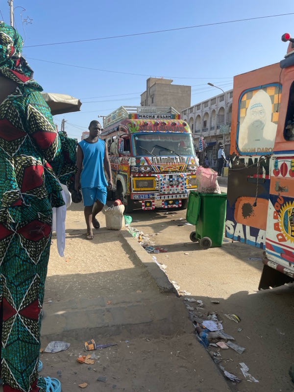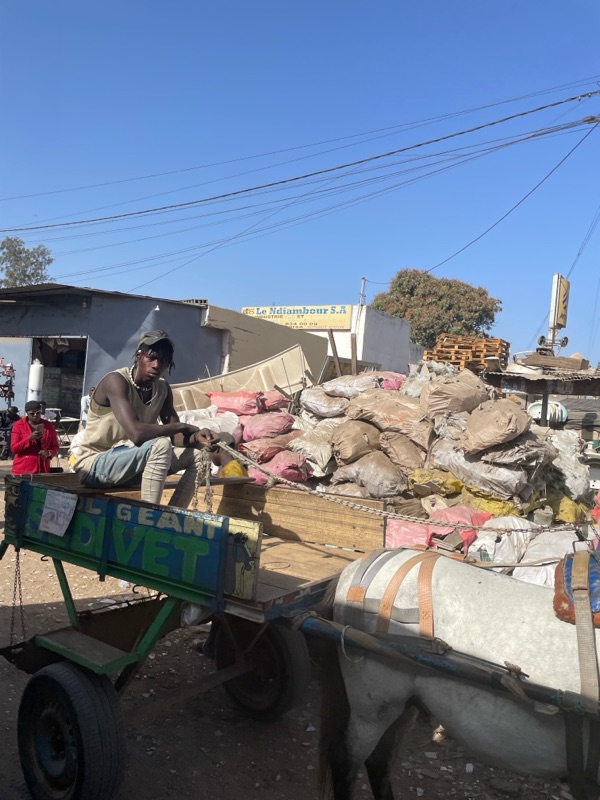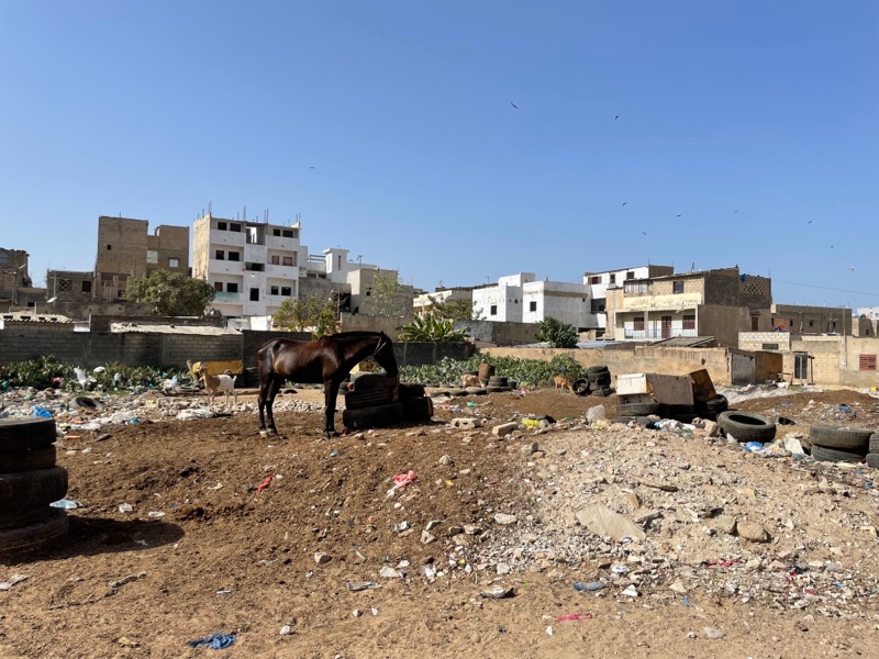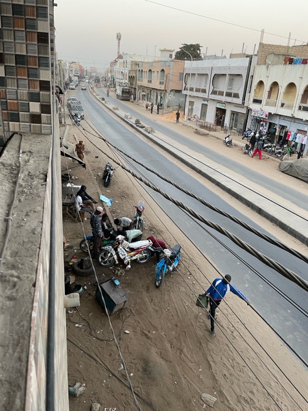 Noch kurz zu Dakar. Große Stadt, sehr voll, ähnlich gebaut wie San Louis, aber städtischer. Die Häuser sind dann eher zwei bis drei Etagen. Die Hauptstraßen sind mehr, und die sind asphaltiert und wahnsinnig voll, und haben Sandränder. Die Zwischenstraße sind alle sandig wie bisher in allen Städten. In Dakar fahren aber eher Pferdekarren als rum. Offenbar mehr Geld als in St. Louis und Noakchott 🤣. Es gibt auch öffentliche Busse mit vielen Linien.