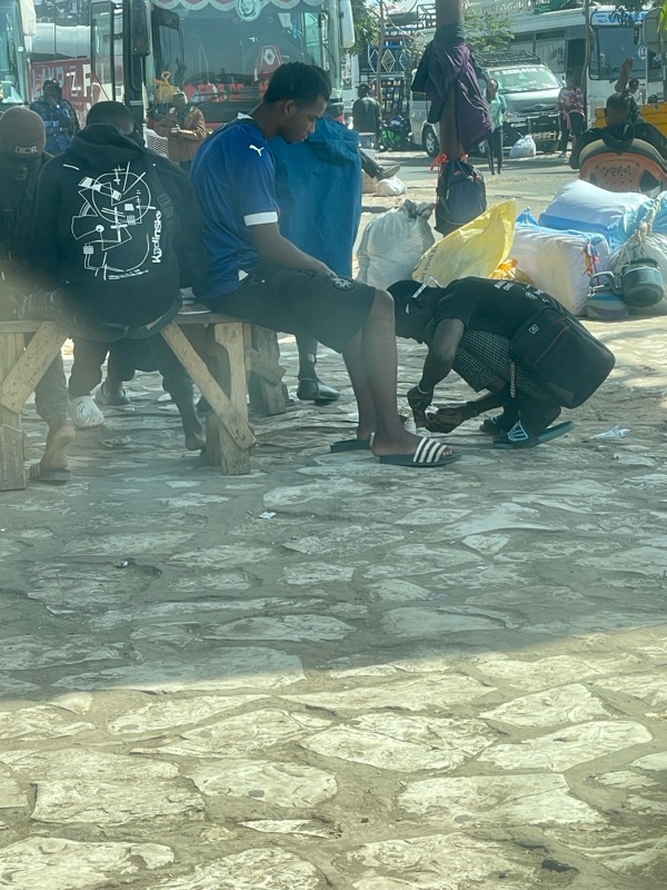 Zurück zur Clique. Danach saßen wir auf einer Treppe vor einem Laden, bestimmt 15 Männer. Einer, der neben mir saß, erzählte, dass er und der und jener nach Deutschland wollen. Ich sagte ihm, dass ich nicht denke, dass er in Deutschland glücklicher wäre. Die Leute sind hier nicht wirklich arm. Alle haben gute Handys und sind wohl ernährt. Sie lachen und haben schöne Zeiten zusammen. Ob sie ohne eine Ausbildung mit Zeugnis in Deutschland ein besseres Leben hätten, wage ich zu bezweifeln. Grundsätzlich habe ich das Gefühl, sie überschätzen die Lebensqualität in Deutschland und unterschätzen, was sie haben.
