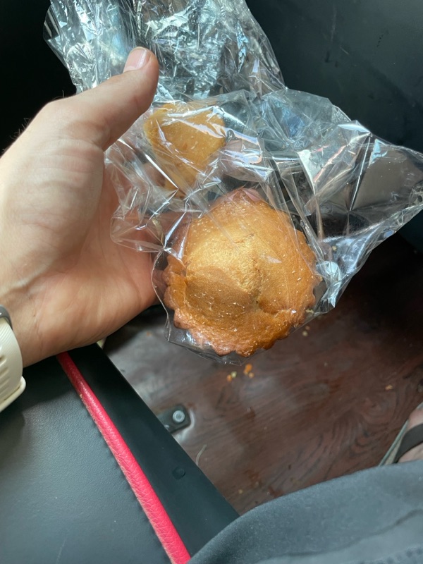 Ich wollte nicht so viele Muffins essen. Deswegen habe ich sie auf meine Nachbarn verteilt. An das Pärchen vor mir, ein älterer Herr aus Senegal und eine junge Frau aus Mauretanien, offenbar ein Liebespärchen, an das Mädchen neben mir, und an einen Asiaten, der neben ihr saß.