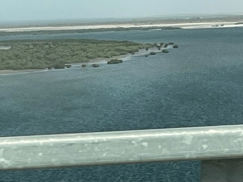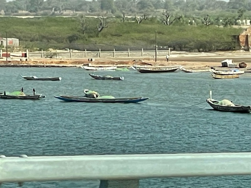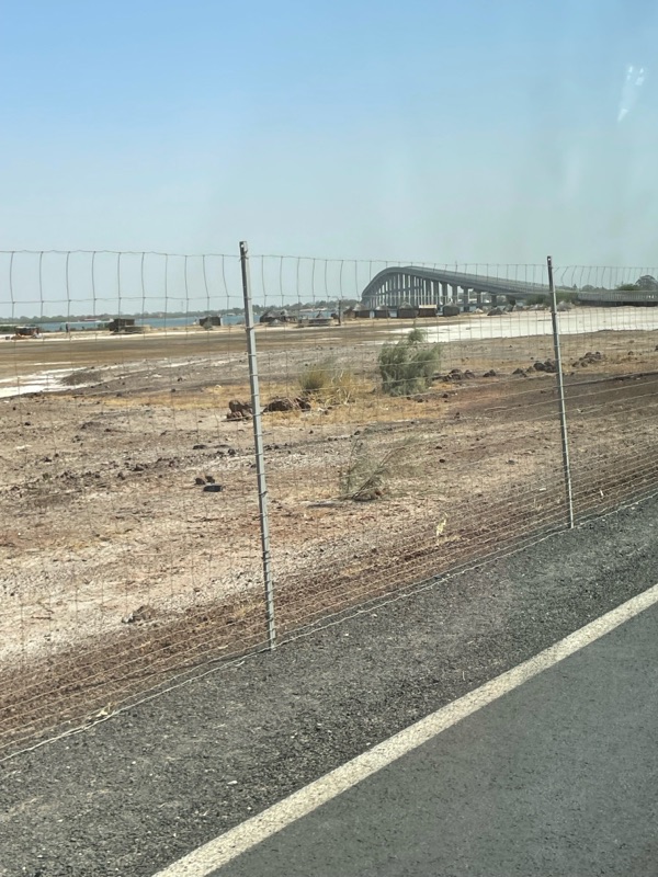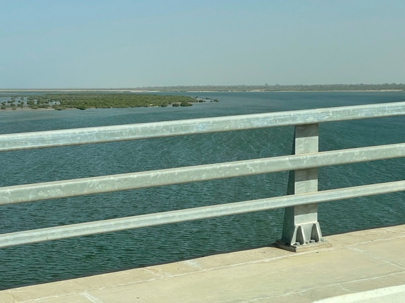 Es ist komisch hier, man fährt ultra schnell, man braucht aber ewig. Andauernd gibt es verkehrsberuhiger, die eher kleine Berge sind, Checkpoints, und Halten, um Waren auszutauschen. Für die 232 km haben wir 5 Stunden gebraucht. Zusätzlich 1 Stunde davor im Bus gewartet. Ich war danach bedient. Doch hier sind ein paar Fotos von der Strecke. Beachtet diese geniale Brücke über den Fluss im Saloum Delta.