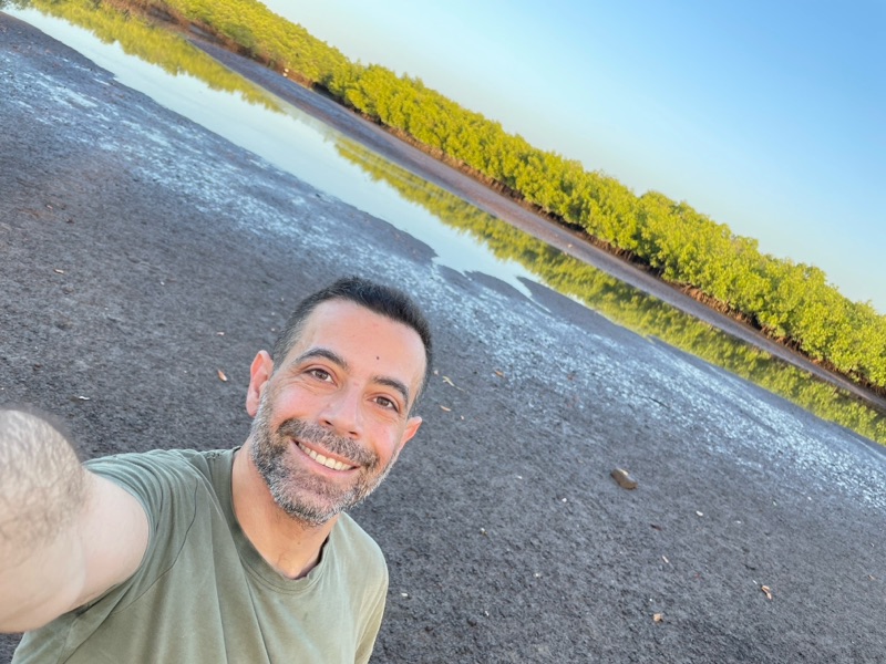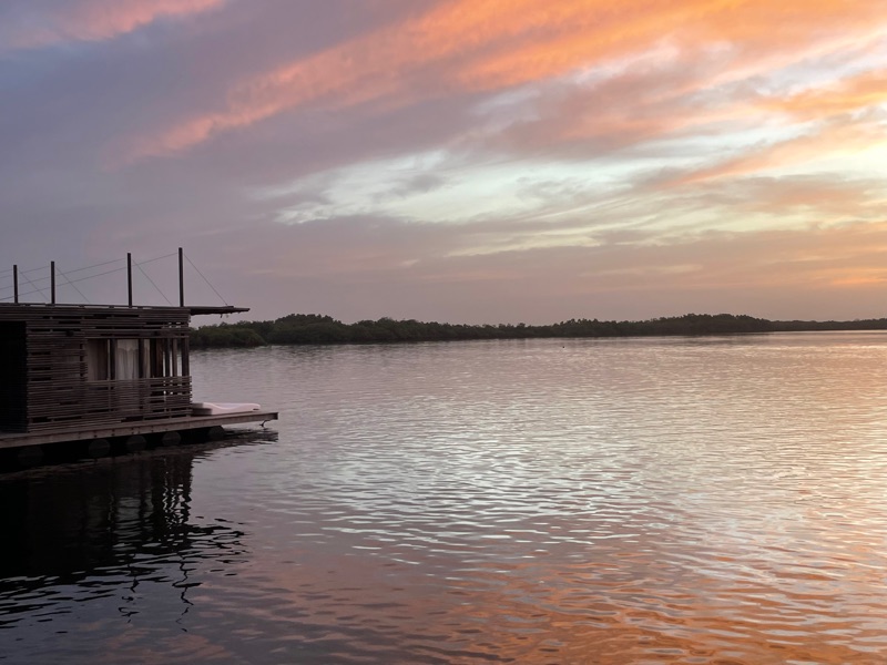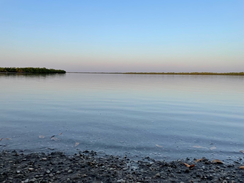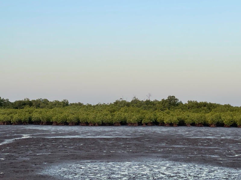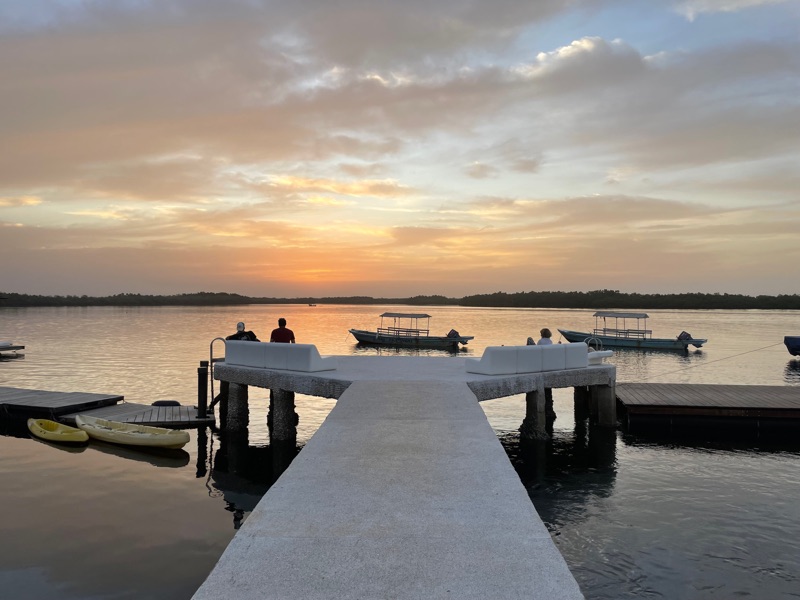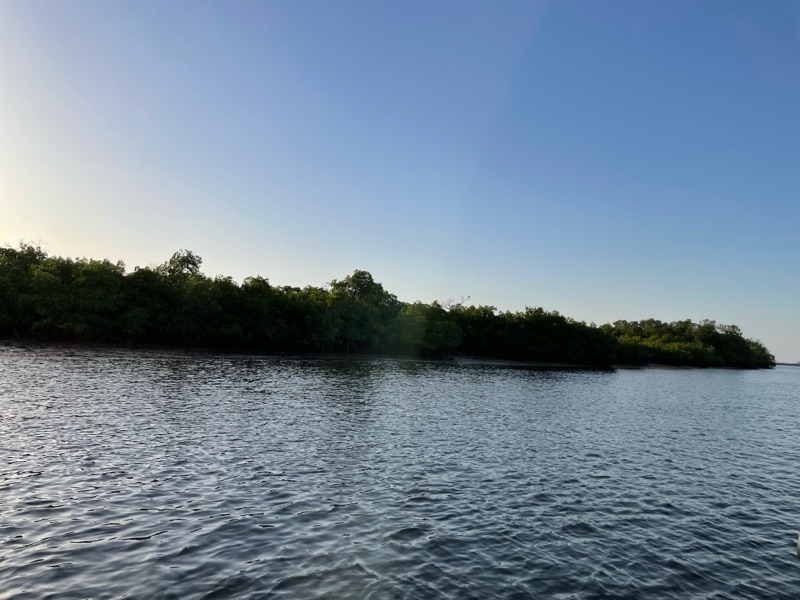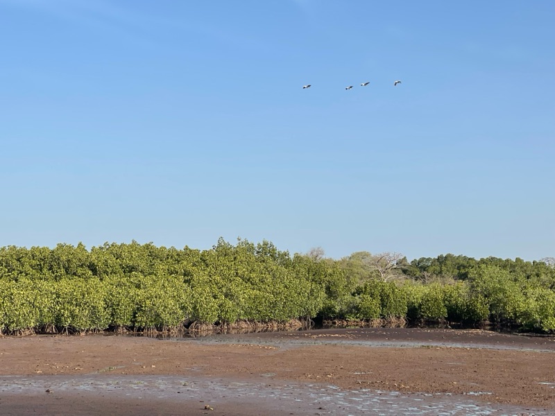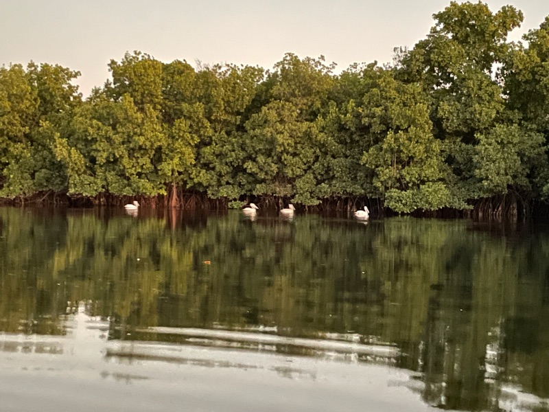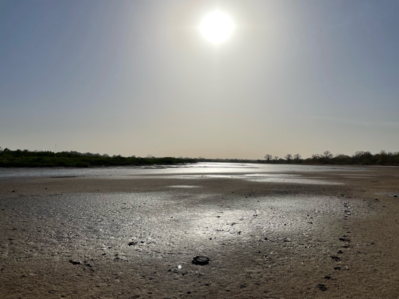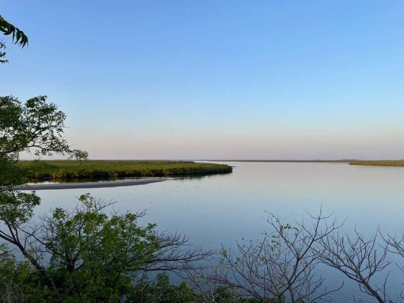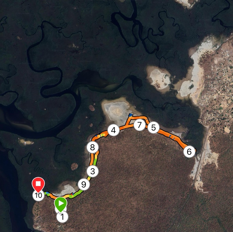 Ich schlief sehr gut. Am Anfang ohne Kleidung und ohne Decken. Es scheint hier normal zu sein, keine Decken zu haben. In Nouakchott hatte ich eine richtige Decke. In San Louis nicht mehr und ich habe alle meine Kleidung angezogen, weil es sonst so kalt war. Auch in Dakar hatte ich keine Decke. Allerdings reichte ein Jäckchen von Billy aus, um nicht zu frieren. Hier, noch südlicher, bin ich gegen vier aufgewacht und mir war es erst dann kalt. Ich zog meine Jogginghose und einen Pullover und hab mich mit dem Handtuch zugedeckt. Das hat ausgereicht. Nach einer schönen Nacht bin ich aufgewacht und lag einfach rum. Dann bin ich joggen gegangen. Eine geniale Joggingroute. Hier sind ein paar Fotos. Auf vielen Fotos sind Vögel zu sehen ( z. B. Die vier fliegenden Pelikane), und danach kommt meine Route auf Maps.