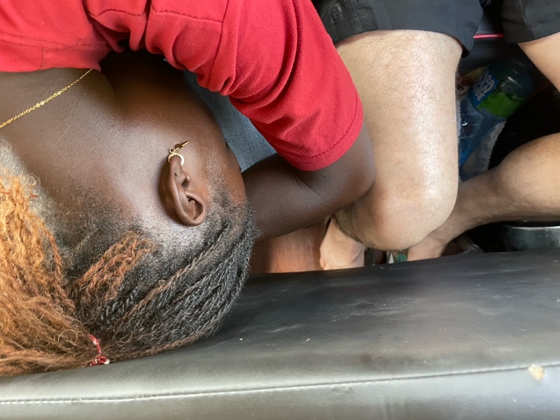 Das Mädchen neben mir, M, hat mich gefragt, woher ich komme und wohin ich fahre und welche Religion ich habe. Ihr Papa hat sie in Dakar zum Bus gebracht. Er blieb da, bis der Bus abgefahren ist und hat andauernd ihr irgendwelche Hinweise gegeben. Sie erzählte mir nachher, mithilfe von Google Übersetzer, dass sie nach Toubakouta fährt, weil sie dort studiert. Ich dachte, oh, sie ist älter als ich dachte und hab mich gewundert, dass in diesem Ort eine Universität gibt. Nein, es handelt sich um ein Internat und das Mädchen ist 15 Jahre alt. Nachher wurde sie müde und schlief ein. Hier ist ein Foto, wie das arme Mädchen zusammengekauert schläft. Nachher lehnte sie sich zurück und dann an meine Schulter.
