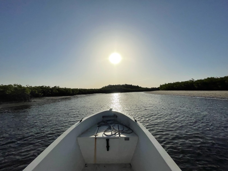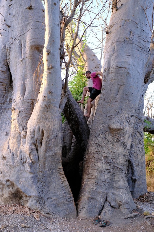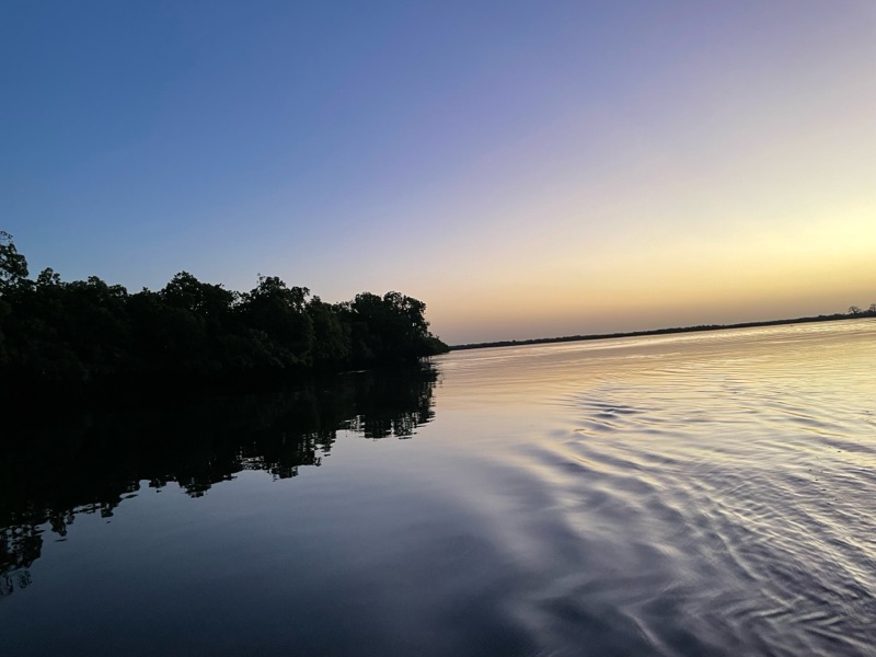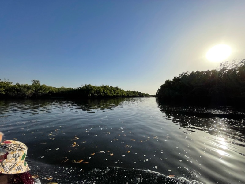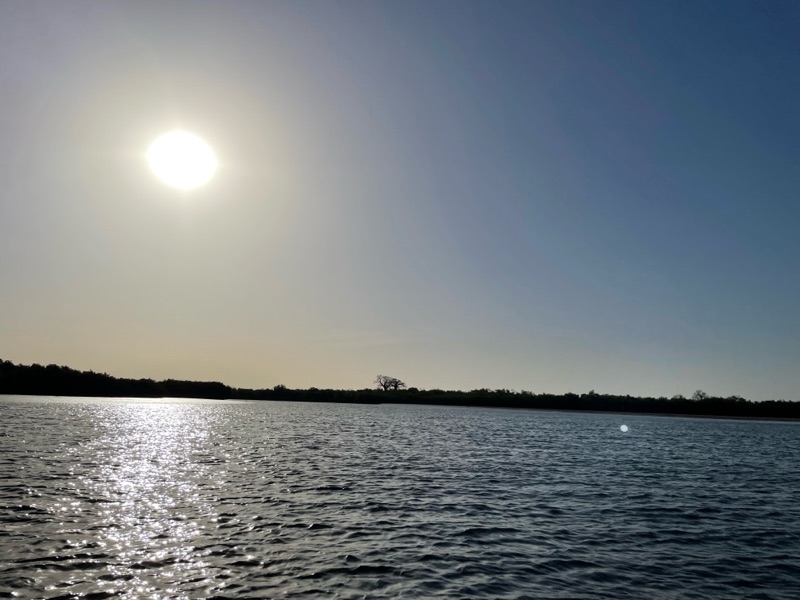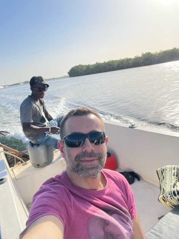 Ich lag auf dem Bett und Alpha, der Mann, der sich um meine Unterkunft kümmert und gleichzeitig in der Touristenbranche im Ort arbeitet, rief mich an. Ich wollte nicht ran. Ich ahnte, es geht darum, dass ich eine Bootstour mitmache. Nach den Erfahrungen in Saint Louis, wo der Typ da mich offensichtlich über den Tisch in mehreren Hinsichten gezogen hat, wollte ich das nicht mehr. Alpha ließ nicht los und rief sechs oder sieben mal hintereinander an. Ich dachte, nicht dass doch was anderes gibt und ging ran. Nein, die Bootstour. Ich dachte, komm, dann machst du halt mit. Der neue Preis war viel besser, weil ich mich den Preis mit einem anderen teilen würde. Jetzt sofort. Alpha holt mich auf dem Motorrad ab und lieferte mich an einen Kumpel von ihm.