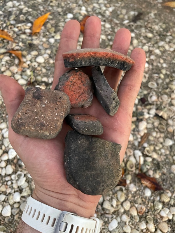Die Tour war wahnsinnig schön. Ich bin so glücklich, dass Alpha so hartnäckig war. Ich hätte sonst eine der bisher schönsten Landschaften verpasst. Wir waren auch auf einer Insel, weltkulturerbe, wo früher ein Friedhof war. Am Strand fand ich keine Steine, sondern nur Muscheln. Tonnenweise. Als ich Steine doch fand, war es Porttery. Angeblich, echte Reste der alten Kulturen auf dieser Insel.