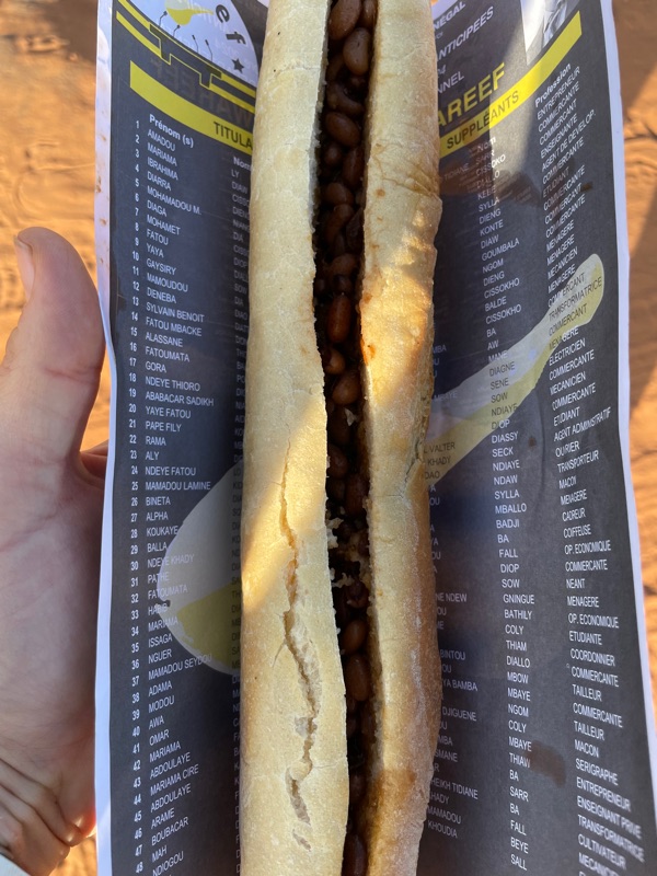 Dann habe ich diese neue Möglichkeit zum Wasserkauf „entdeckt“. Bisher ist die Wasserversorgung in Mauretanien und in Senegal sehr gut. Alle 100 m gibt’s eine kleine Grocerie, in der Wasser angeboten wird, häufig kalt. Ich hab bisher Wasser in Flaschen gekauft. Es war jedes Mal ein Kampf, dem Verkäufer zu sagen, dass ich die große Flasche haben möchte. Mehr als einmal holte der Verkäufer eine verstaubte Flasche und musste sie zuerst putzen, bevor er sie mir in die Hand gedrückt hat.