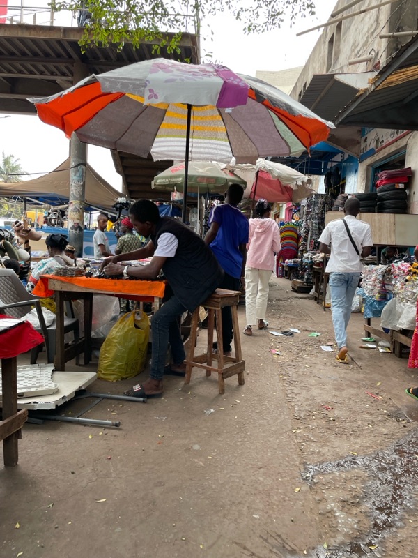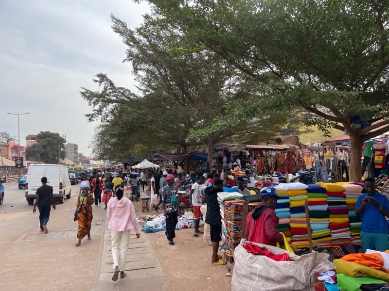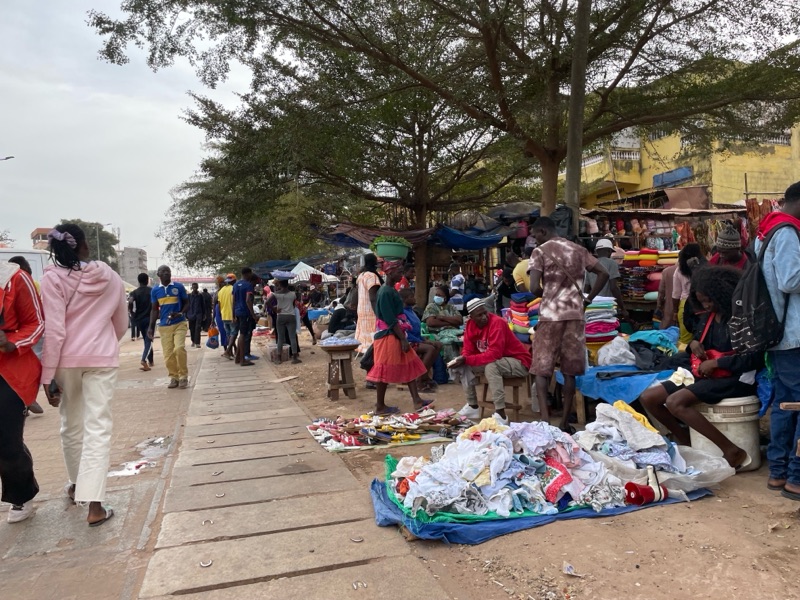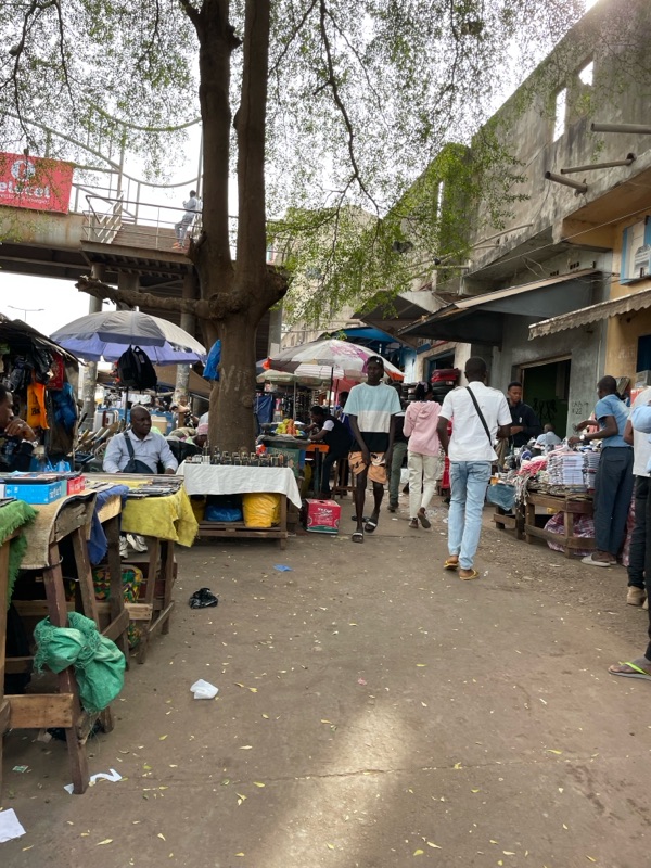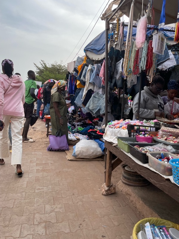 Auf den Straßen ist viel los, die Menschen sind draußen unterwegs, wie in St. Louis. Musik hört man überall, sogar noch mehr als in Serrekunda. Leider gibt es hier wieder viel Müll, besonders am Stadtrand – im Zentrum ist es sauberer. Insgesamt aber nicht so ordentlich wie in Serrekunda oder Ziguinchor. Auffällig ist auch, dass die Leute hier eher Flipflops als Schlappen tragen – vielleicht ein brasilianisch-portugiesischer Einfluss? 😆