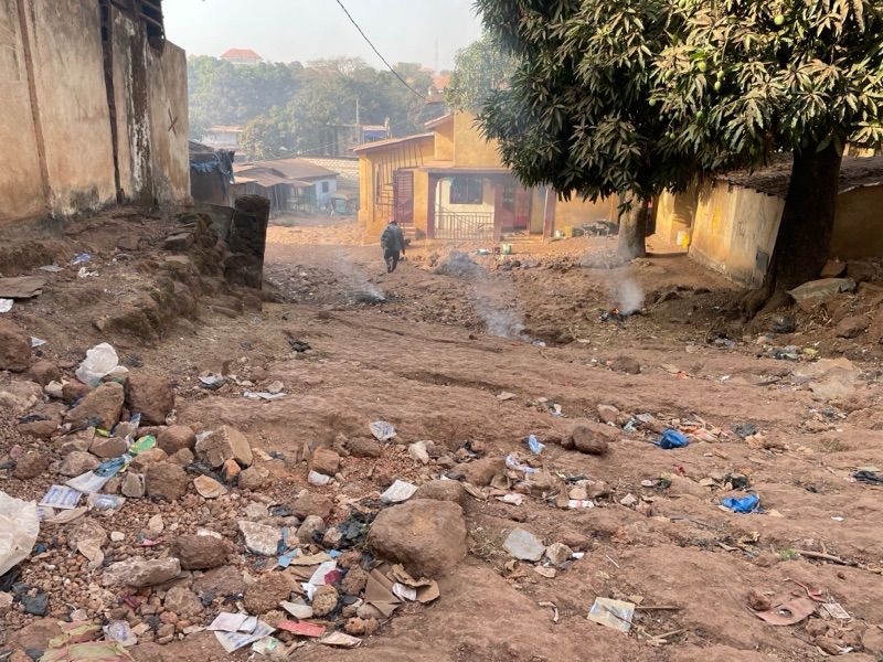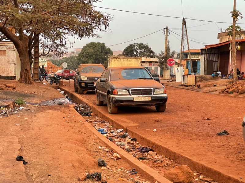 Tiefe, offene Kanalisation durchzieht die Stadt. Es ist offensichtlich, dass es hier ordentlich regnet. Ich meine, ich erzählte mal, dass alle großen Flüsse der Region (Senegal, Gambia, etc.) aus dieser Gegend stammen. Es muss ein hartes Regensaison hier geben.