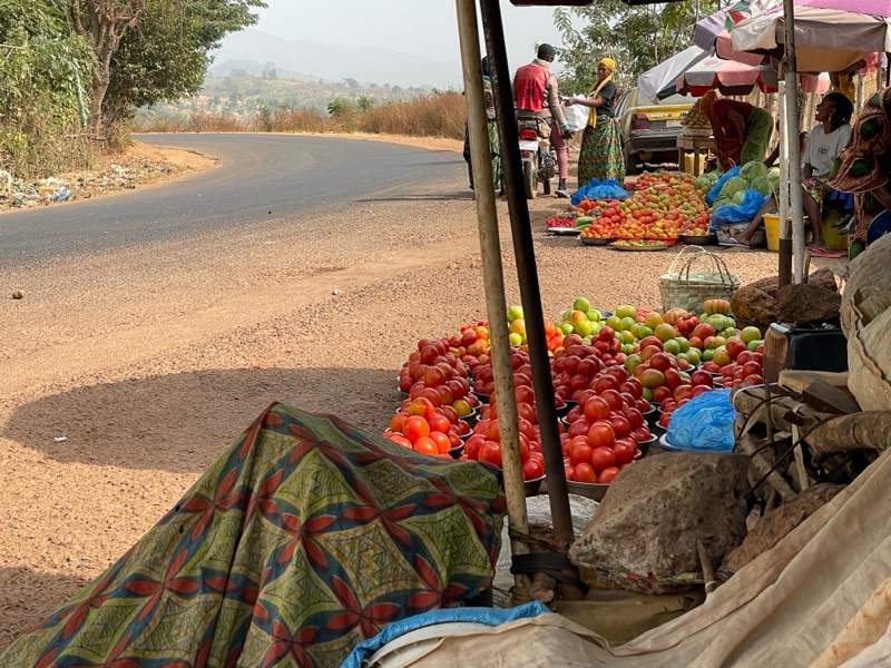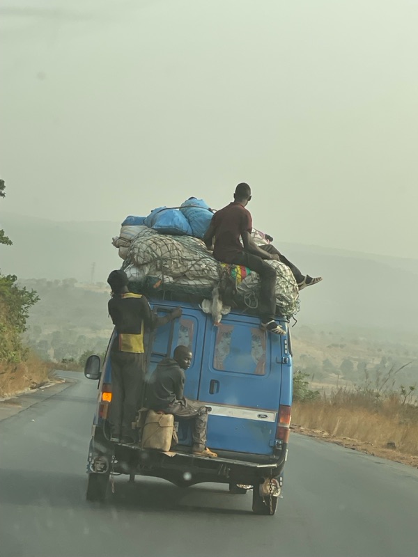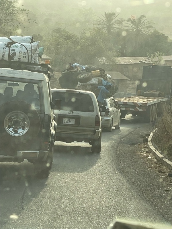 Das erste Drittel der Strecke, bis Mamou, war voll mit Schlaglöchern. Ich dachte, wenn wir so weiter fahren, brauchen wir bis zum nächsten Tag. Doch ab Mamou war die Straße in einem sehr guten Zustand. Das war aber nicht nur positiv. Denn das schnelle fahren war echt riskant. Ich freute mich sehr über den Sicherheitsgurt. Es war ein stop and go, die Verkehrsteilnehmer waren nicht harmonisch: Motorräder, schnelle und langsame, sehr langsame LKWs, stehen gebliebene Autos, etc.