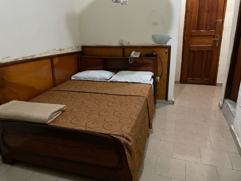 Ich ging Richtung Ozean, wo auf Google Maps das eine oder andere Hotel markiert sind. In der Tat gab es einen Schild und ich bin abgebogen nach circa 2 km Marsch. Auf dieser Strecke wurde ich 50 mal angefragt, ob ich nicht ein Taximoto (nicht Mototaxi, wie ich früher fälschlicherweise geschrieben habe) haben möchte. Irgendwann hab ich aufgehört abzuwinken. Das Hotel sah in einem nicht so guten Zustand. Es kostet 450.000 (ca. 50€). Zu teuer für die Stadt und für das Hotel. Aber so sind wohl die Preise in Conakry. Ich fragte, ob günstigere Hotels gibt. Der Rezeptionist hat mir glaubwürdig gesagt, dass andere Hotels noch teurer wären. Von Innen sah es noch schlimmer aus. Die Bettlacken haben zwar nicht so gut gerochen, sie waren aber wahrscheinlich gewaschen. Der Rezeptionist hat für mich die Klimaanlage angemacht. Allerdings gibt es keine Fernbedienung. Ich kann sie nicht ausmachen.