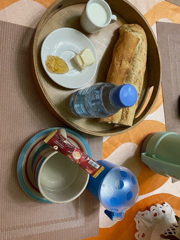 WLAN funktioniert im Hotel nicht, dafür ist Frühstück inklusive. Ich bin nicht sicher, ob ich frühstücken soll. Denn ich habe wieder einen leichten Durchfall und ich kann es nicht riskieren, damit ins Flugzeug einzusteigen. Ich habe aber gefrühstückt 😅