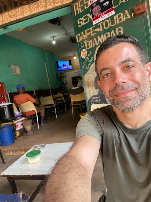 Hier gibt es keine Eselkarren, doch jede Menge Motorräder. Sehr lästig. Ähnlich wie in Labé. Und, zum ersten Mal, es gibt praktisch keine Schafen und keine Ziegen (und keine Schweine und keine Esel und keine Pferde und keine Katzen). Ich hab wenige Hunde gesehen. Hühner gibt es jede Menge.